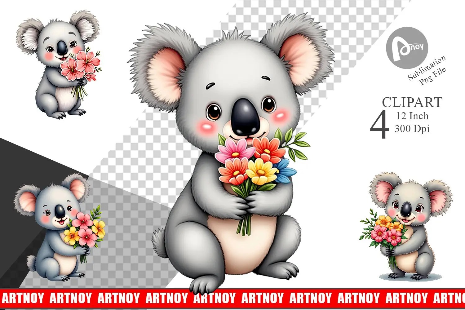 Koala Spring Bouquet Clipart