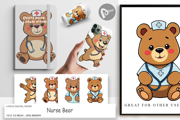 Digital Paper Nurse Bear