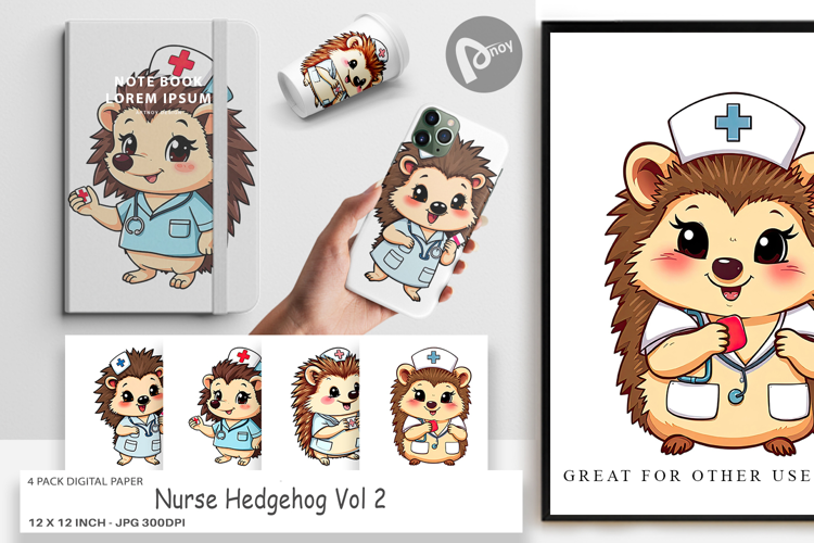 Digital Paper Nurse Hedgehog example image 1