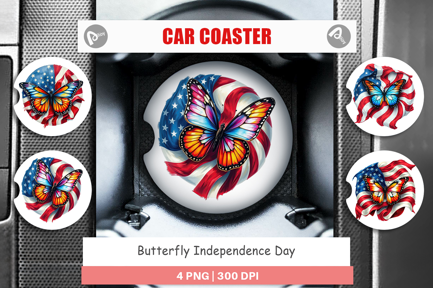 Car Coaster Butterfly 4th of July example image 1