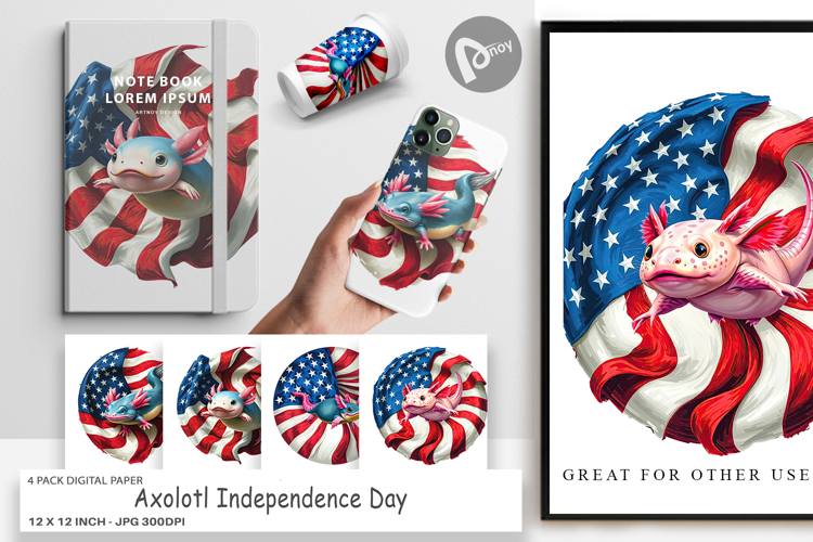 Similar Design Products to Digital Paper Axolotl 4th of July