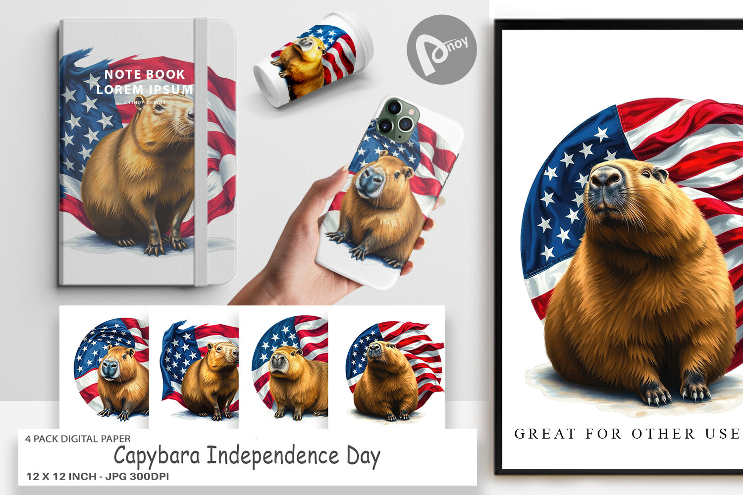 Digital Paper Background Independence Day Scrapbook Paper Digital Paper Bundle Printable Digital Paper Sublimation Paper Background Capybara 4th Of July Digital Paper Capybara 4th Of July Background Capybara 4th Of July