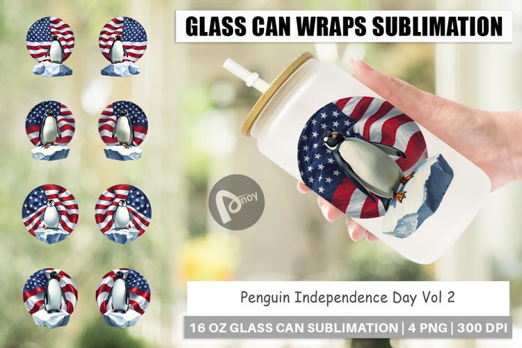 Independence Day Sublimation Design Glass Can Wrap Libbey Glass Beer Can Glass Glass Can Sublimation 16oz Glass Can Wrap Penguin 4th Of July Glass Can Wrap Penguin 4th Of July Glass Can Sublimation Penguin 4th Of July
