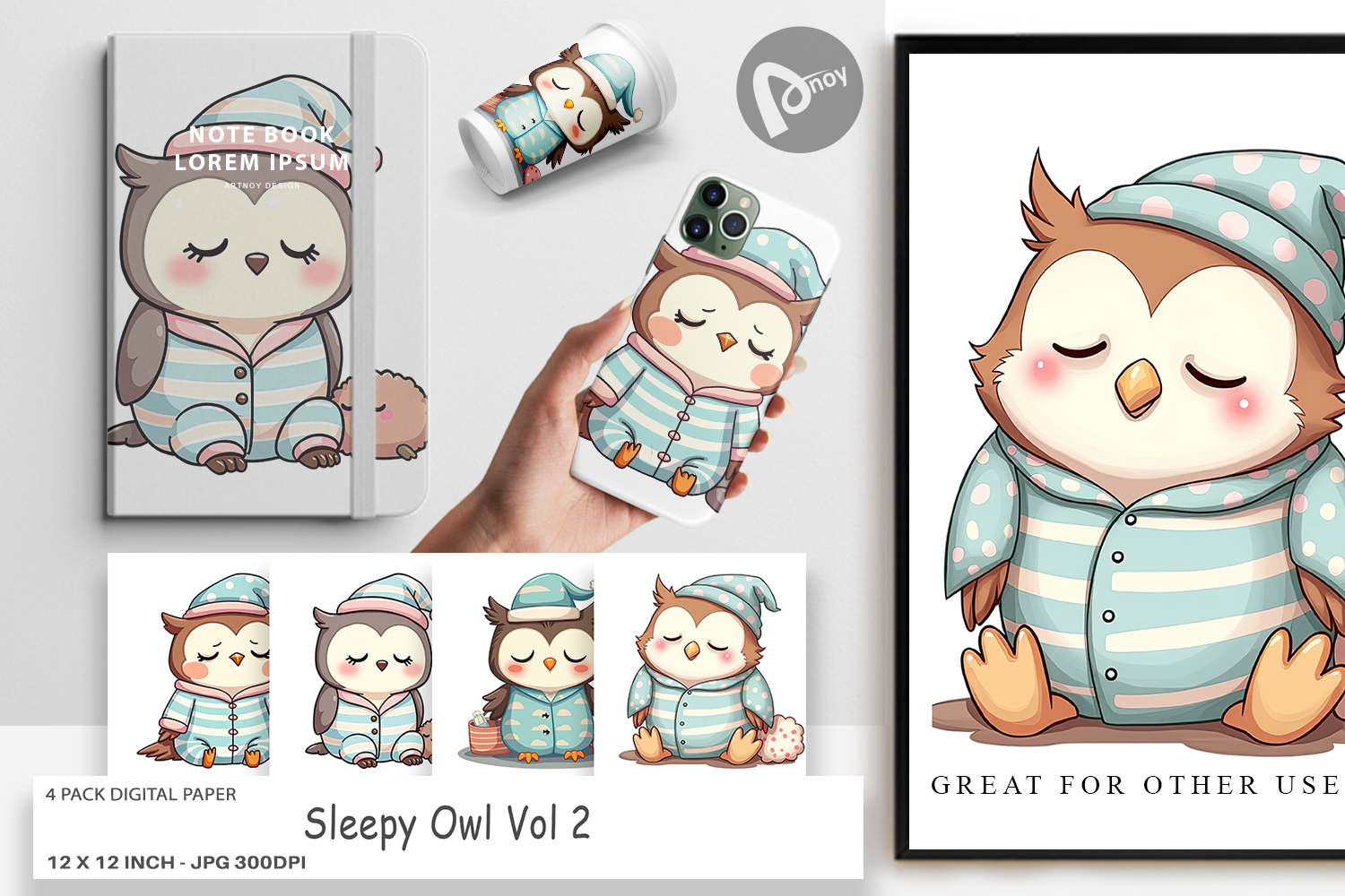 Digital Paper Background Scrapbook Paper Digital Paper Bundle Printable Digital Paper Sleepy Owl Sleep Day Sublimation Paper Background Digital Paper Sleepy Owl Background Sleepy Owl