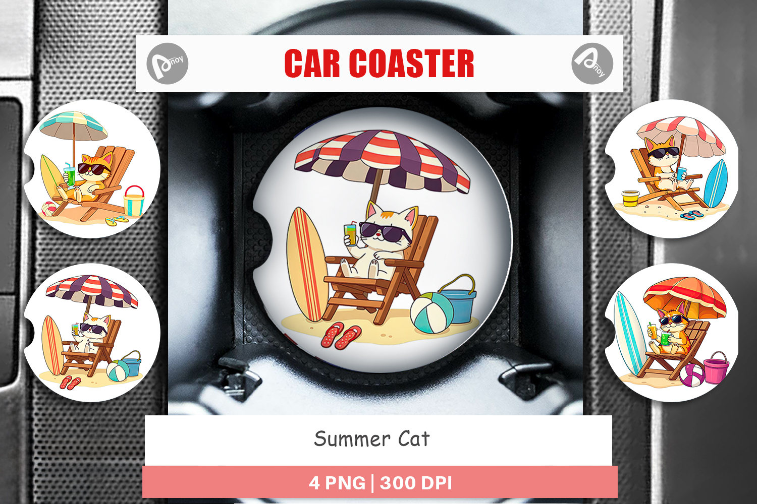 Summer Day Summer Cat Car Coaster Car Coaster Png Car Coaster Template Coaster Design Car Coaster Sublimation Design Coaster Round Car Coaster Summer Cat Coaster Sublimation Summer Cat