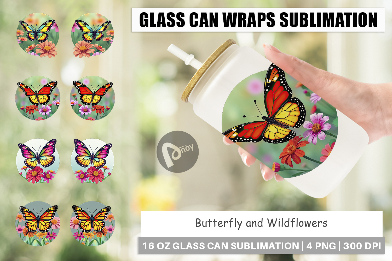 Sublimation Design Forest Day Wildflower Butterfly Glass Can Wrap Libbey Glass Beer Can Glass Glass Can Sublimation 16oz Glass Can Wrap Glass Can Wrap Wildflower Butterfly Glass Can Sublimation Wildflower Butterfly