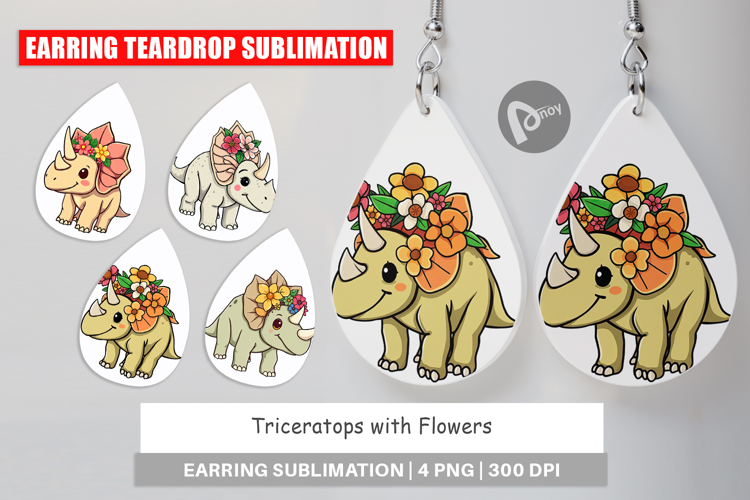 Earrings Earrings Bundle Sublimation Earrings Earring Teardrop Earring Sublimation Designs Sublimation Earring Teardrop Dino Day Triceratops With Flowers Earring Teardrop Triceratops With Flowers Earring Sublimation Triceratops With Flowers