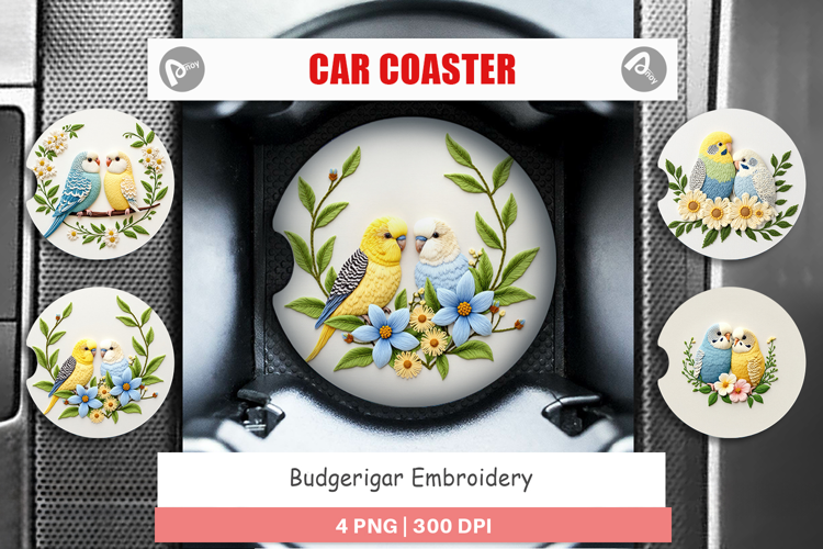 Car Coaster Budgerigar Embroidery example image 1