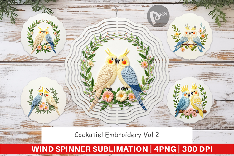 Animal Embroidery Wind Spinner Sublimation Sublimation Wind Spinner Wind Spinner Sublimation Bundle Alt Wind Spinner Sublimation Spinner Spinner Design Cockatiel Embroidery Wind Spinner Cockatiel Embroidery Spinner Sublimation Cockatiel Embroidery