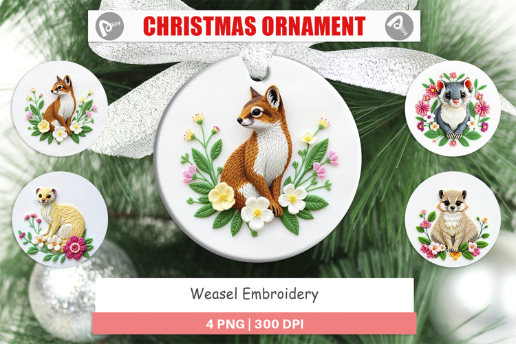 Christmas Ornament Round Ornament Ornament Design Animal Embroidery Ornament Sublimation Ornament Bundle Round Christmas Ornament Weasel Embroidery Christmas Ornament Weasel Embroidery Ornament Sublimation Weasel Embroidery