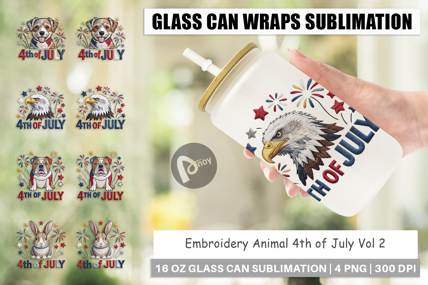 Glass Can 4th of July Embroidery Animal example image 1
