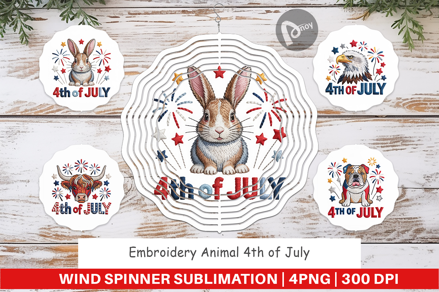 Wind Spinner 4th of July Embroidery Animal