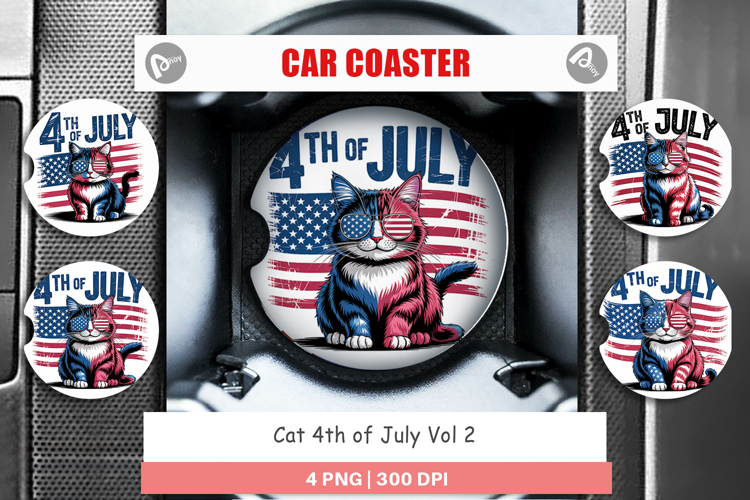 Car Coaster 4th of July Cat example image 1