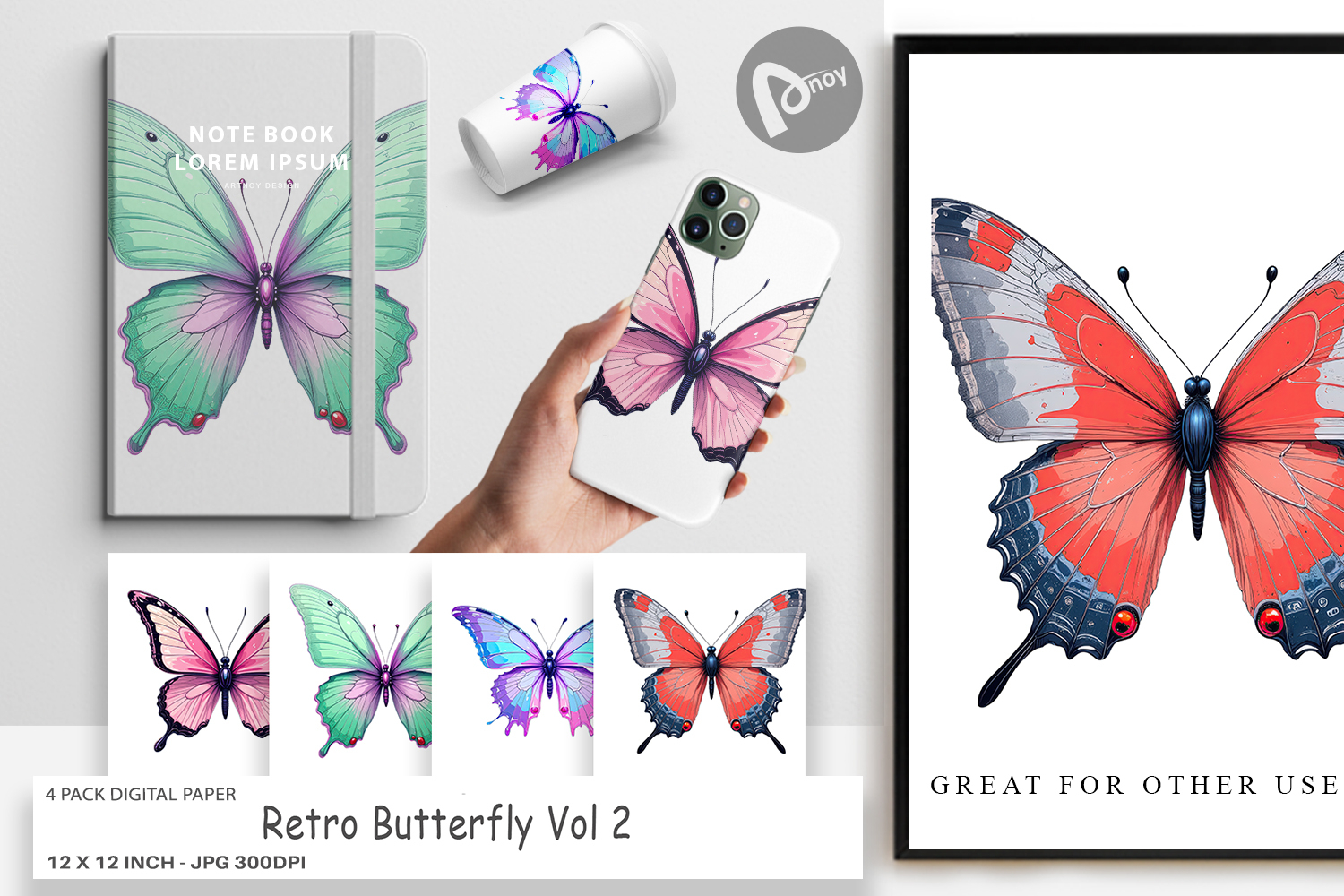Digital Paper Background Scrapbook Paper Digital Paper Bundle Printable Digital Paper Retro Butterflies Sublimation Paper Background Digital Paper Retro Butterflies Background Retro Butterflies
