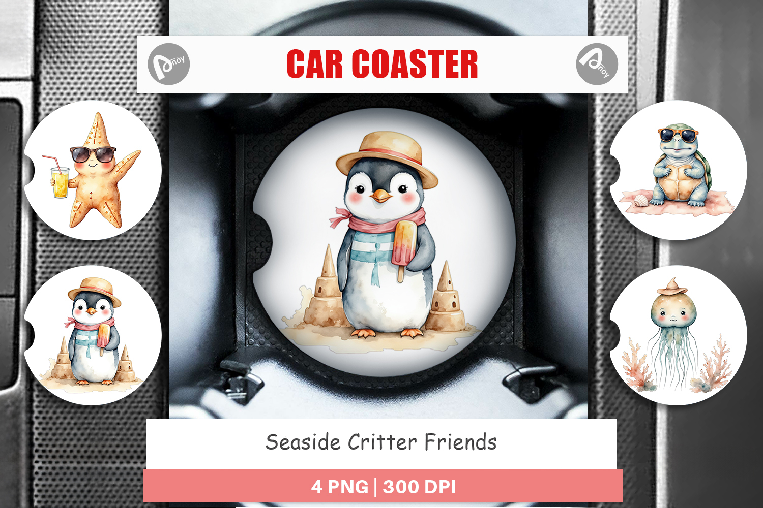 Watercolor Animal Car Coaster Car Coaster Png Car Coaster Template Coaster Design Car Coaster Sublimation Design Coaster Round Car Coaster Seaside Critter Friends Coaster Sublimation Seaside Critter Friends Seaside Critter Friends