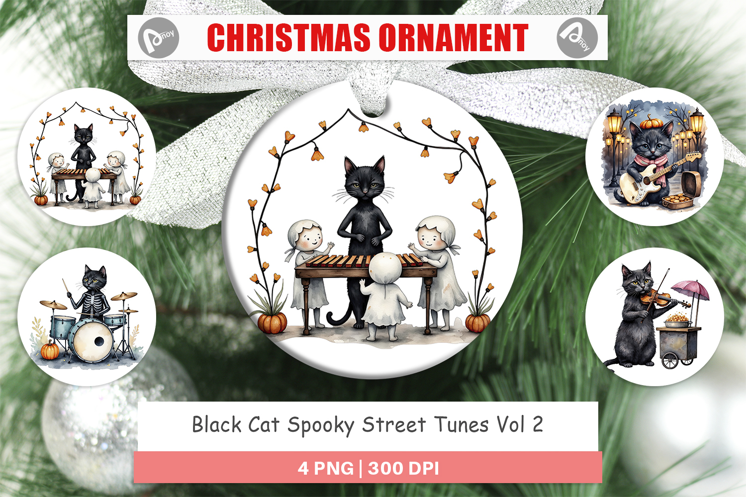 Watercolor Halloween Christmas Ornament Round Ornament Ornament Design Ornament Sublimation Ornament Bundle Round Christmas Ornament Black Cat Tunes Christmas Ornament Black Cat Tunes Ornament Sublimation Black Cat Tunes
