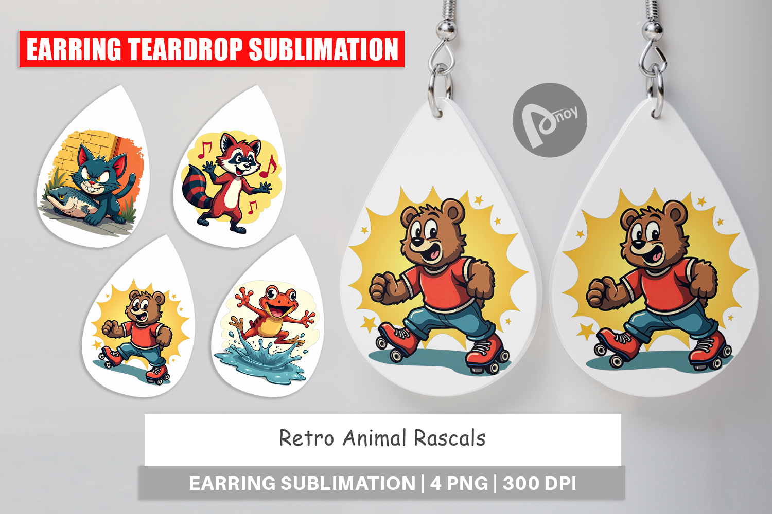 Earrings Earrings Bundle Sublimation Earrings Earring Teardrop Earring Sublimation Designs Sublimation Earring Teardrop Retro Animal Retro Animal Rascals Earring Teardrop Retro Animal Rascals Earring Sublimation Retro Animal Rascals