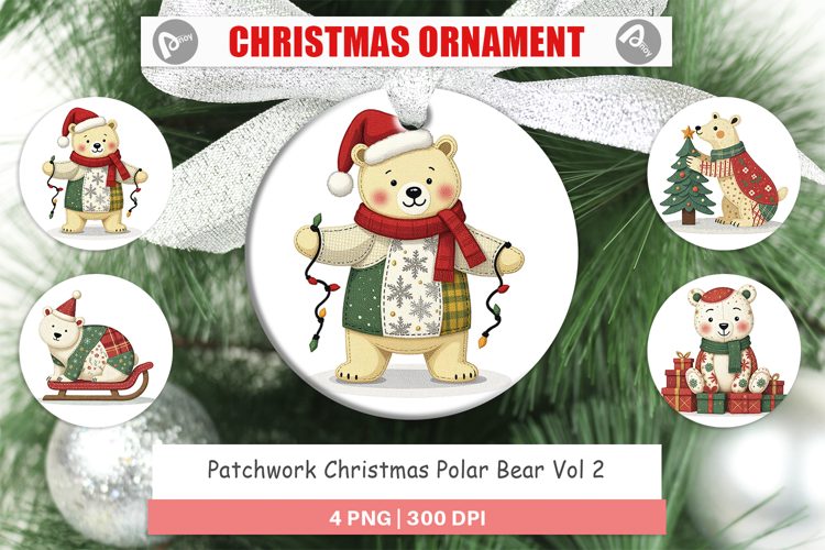 Christmas Ornament Round Ornament Ornament Design Ornament Sublimation Ornament Bundle Round Christmas Ornament Patchwork Christmas Patchwork Polar Bear Christmas Ornament Patchwork Polar Bear Ornament Sublimation Patchwork Polar Bear