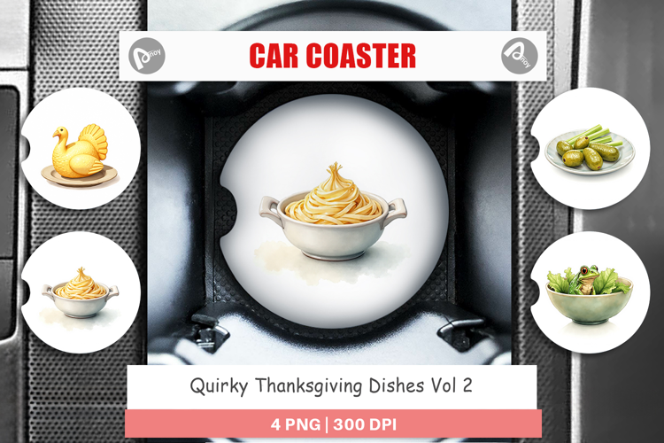 Car Coaster Watercolor Quirky Thanksgiving Dishes example image 1