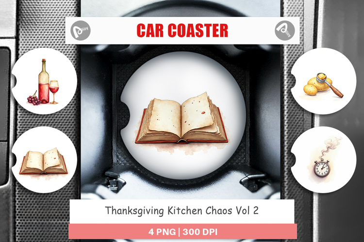 Car Coaster Watercolor Thanksgiving Kitchen Chaos example image 1