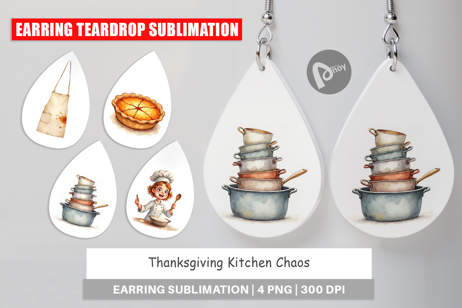 Gift For Mom Earring Sublimation Designs Sublimation Earrings Png Diy Jewelry Making Sublimation Blanks Png Printable Earring File Fall Holiday Accessory Kitchen Chaos Teardrop Earring Funny Thanksgiving Jewelry Humorous Earring