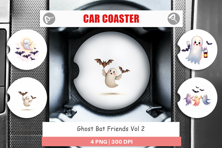 Car Coaster Watercolor Ghost Bat Friends example image 1
