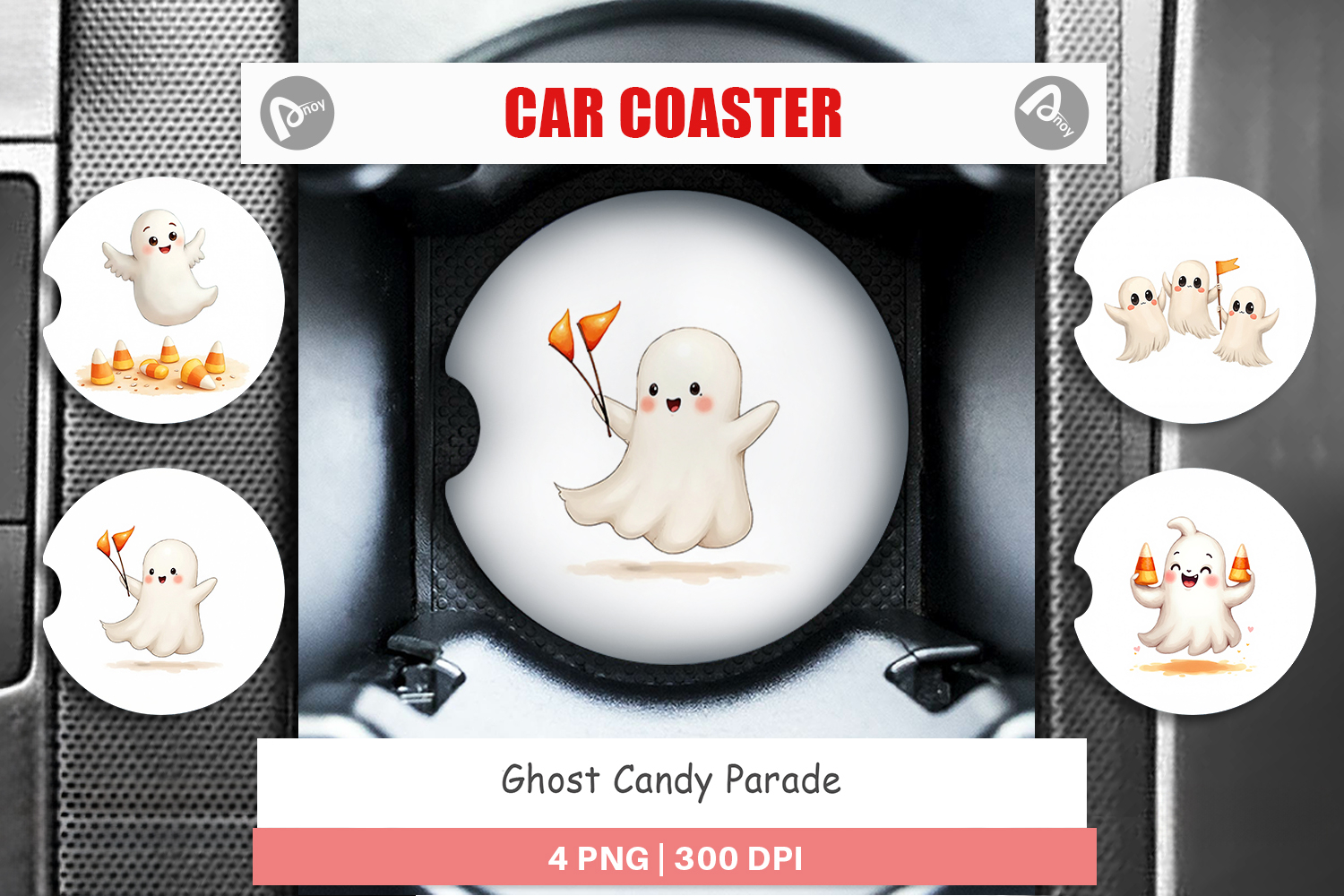 Sublimation Designs Trick Or Treat Png Car Coaster Png Car Coaster Sublimation Round Sublimation Template Ghost Car Coaster Cup Holder Coaster Png Halloween Car Decor Spooky Season Gift Candy Parade Car Decor