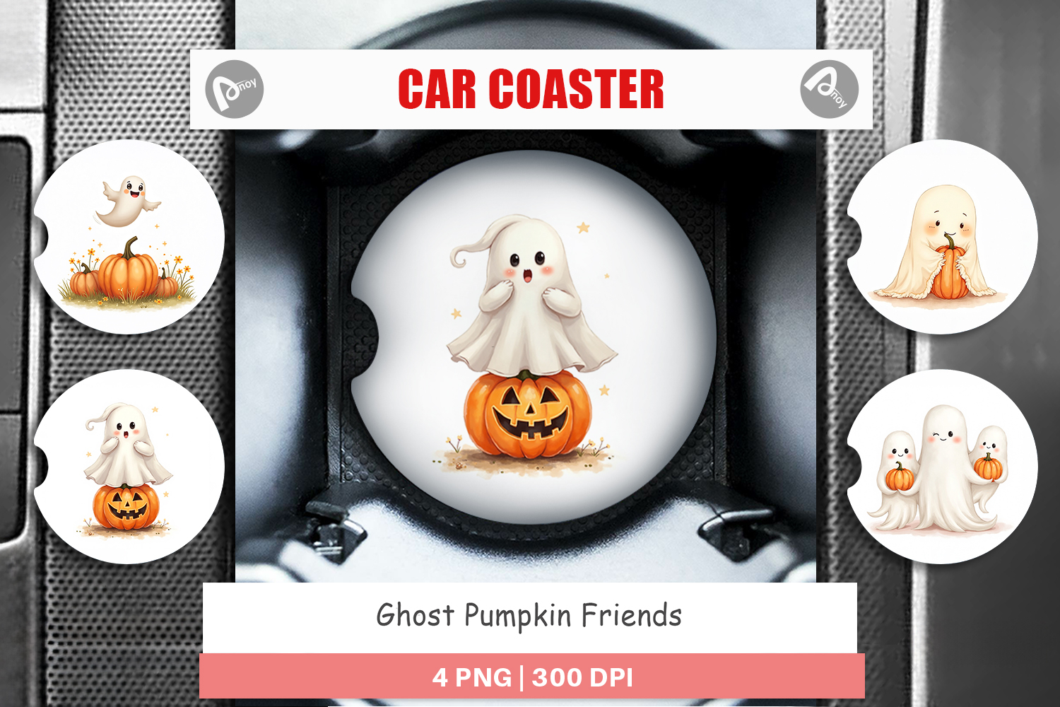 Car Coaster Watercolor Ghost Pumpkin Friends