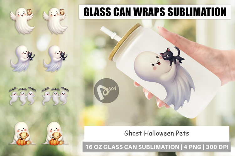 Sublimation Designs Full Wrap Design Halloween Glass Can Libbey Glass Sublimation Glass Can Wrap Png Ghost Glass Can Wrap Printable Drinkware Spooky Season Gift Halloween Pets Iced Coffee Cup Ghost Dog Cat Cup