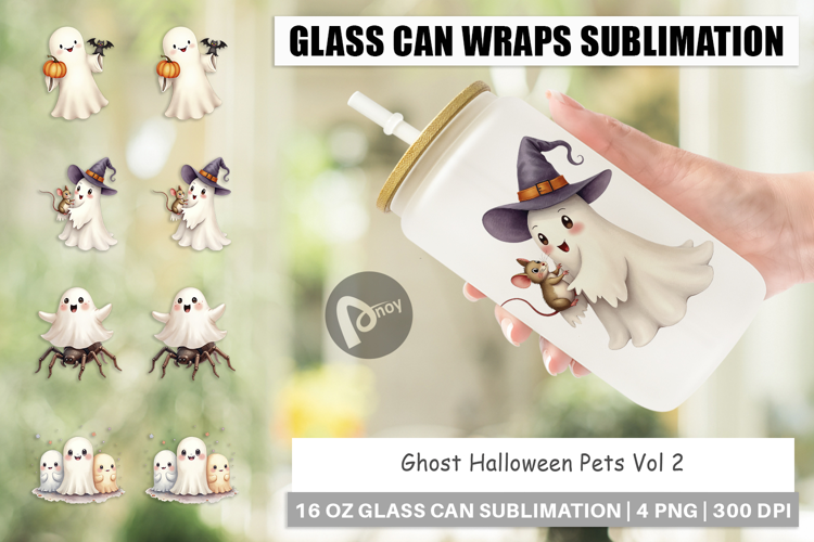 Sublimation Designs Full Wrap Design Halloween Glass Can Libbey Glass Sublimation Glass Can Wrap Png Ghost Glass Can Wrap Printable Drinkware Spooky Season Gift Halloween Pets Iced Coffee Cup Ghost Dog Cat Cup