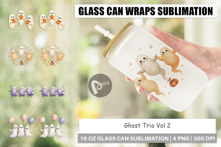 Sublimation Designs Full Wrap Design Halloween Glass Can Libbey Glass Sublimation Glass Can Wrap Png Printable Drinkware Spooky Season Gift Ghost Trio Glass Can Wrap Three Ghosts Iced Coffee Cup Best Friends Cup