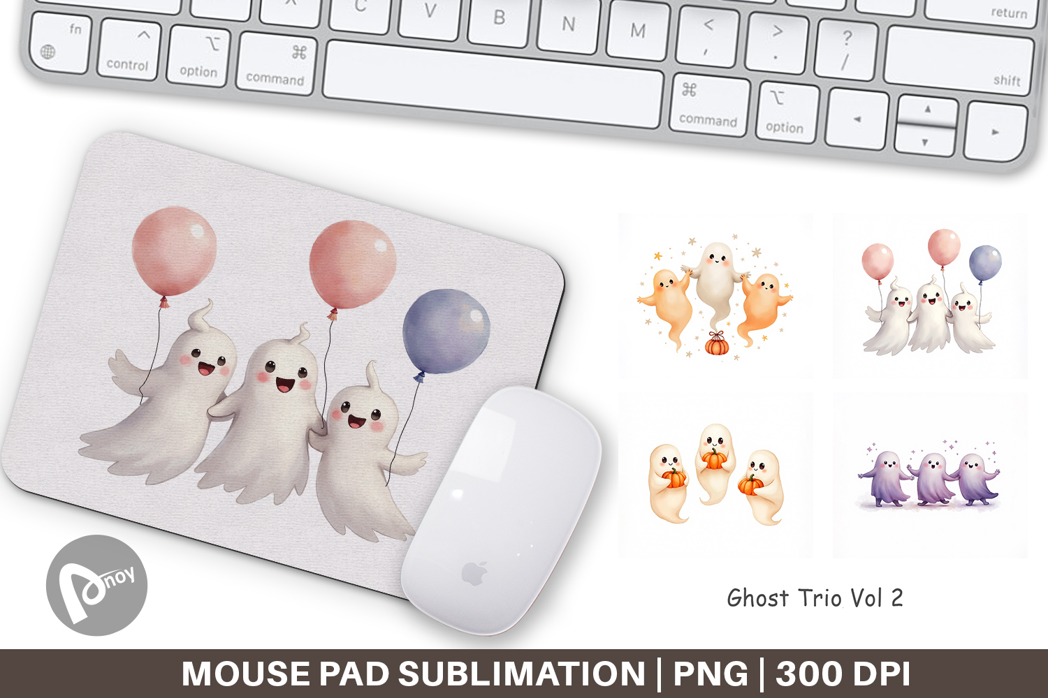 Sublimation Design Best Friends Gift Mouse Pad Sublimation Mouse Pad Png Mouse Mat Design Desk Accessory Png Spooky Season Gift Halloween Desk Decor Ghost Trio Mouse Pad Three Ghosts Desk Mat