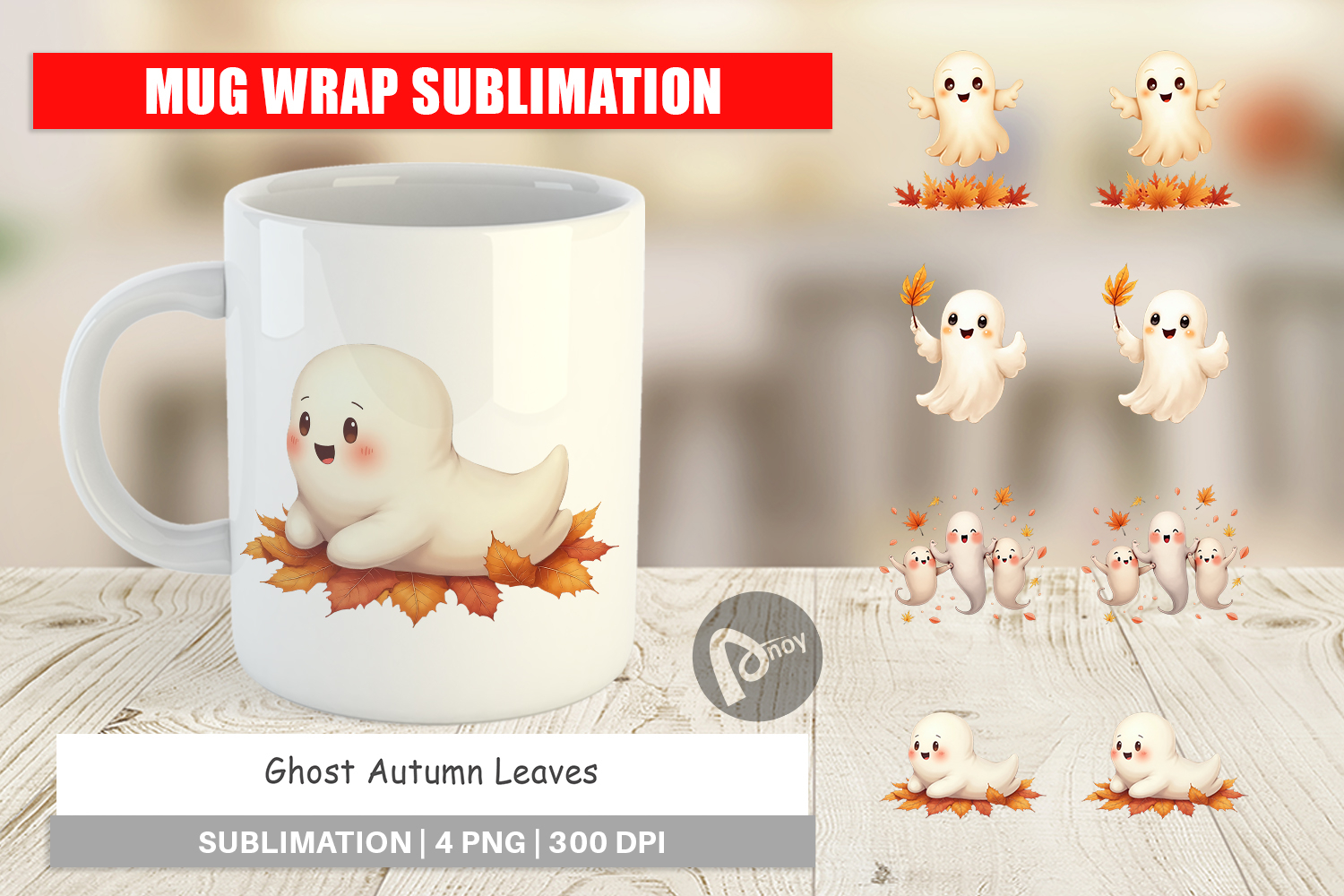 Mug Wrap Watercolor Ghost Autumn Leaves