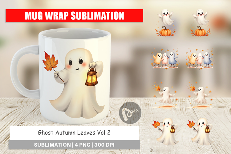 Mug Wrap Watercolor Ghost Autumn Leaves example image 1