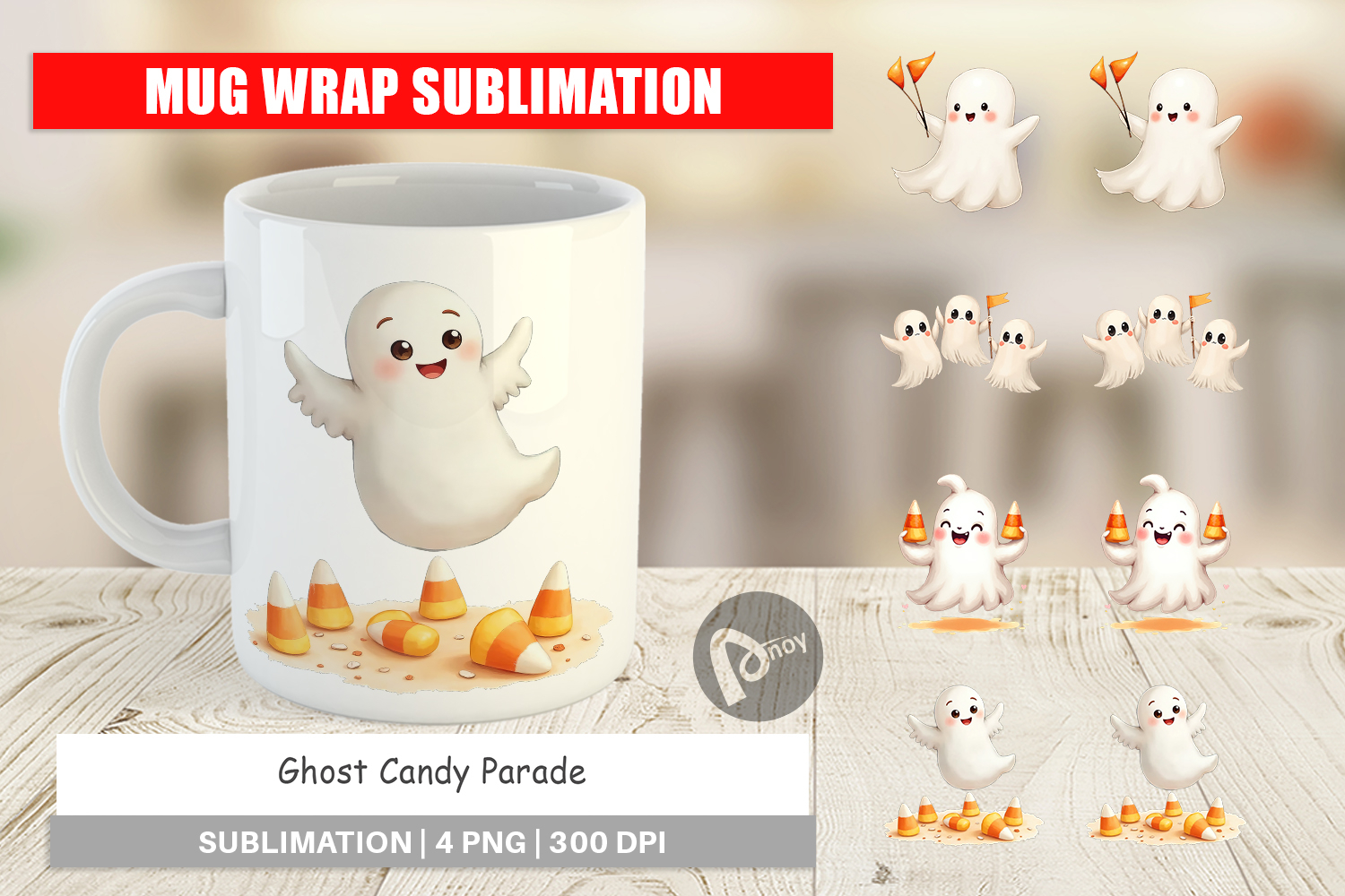 Mug Wrap Watercolor Ghost Candy Parade