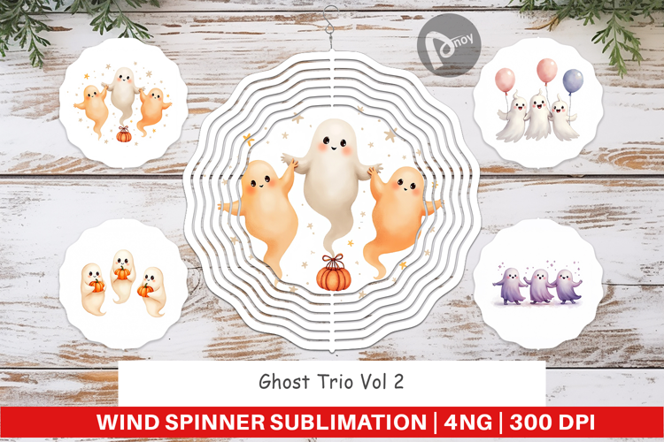Wind Spinner Watercolor Ghost Trio