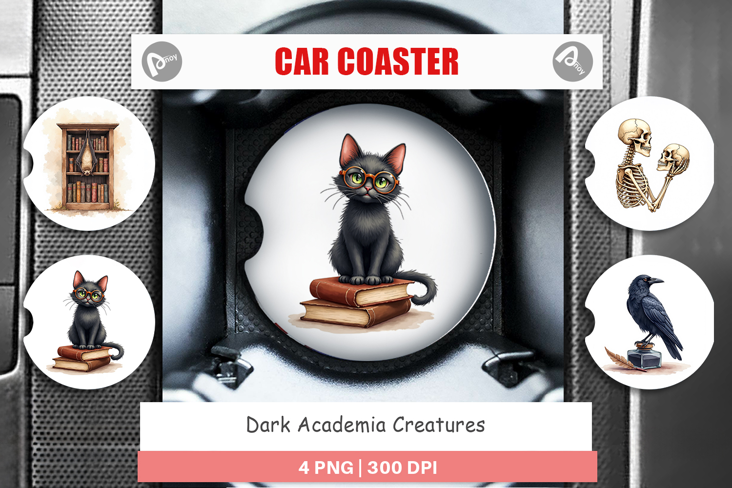 Sublimation Designs Car Coaster Png Car Coaster Sublimation Gift For Book Lover Round Sublimation Template Cup Holder Coaster Png Dark Academia Car Coaster Creatures Car Decor Gothic Car Accessory Mythical Beast Png