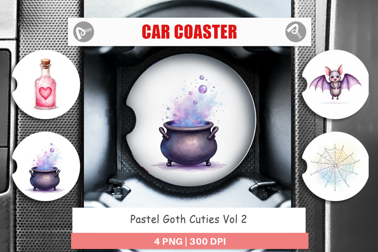 Car Coaster Watercolor Pastel Goth Cuties example image 1