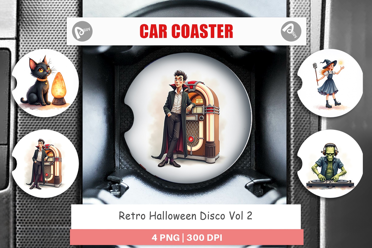 Car Coaster Watercolor Retro Halloween Disco example image 1