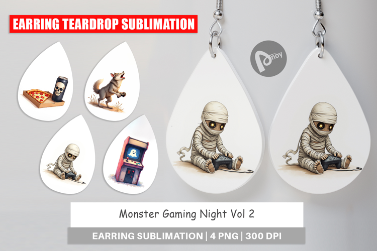 Gift For Gamer Earring Sublimation Designs Gothic Earring Png Sublimation Earrings Png Halloween Accessory Diy Jewelry Making Sublimation Blanks Png Printable Earring File Monster Gaming Teardrop Earring Gamer Theme Jewelry
