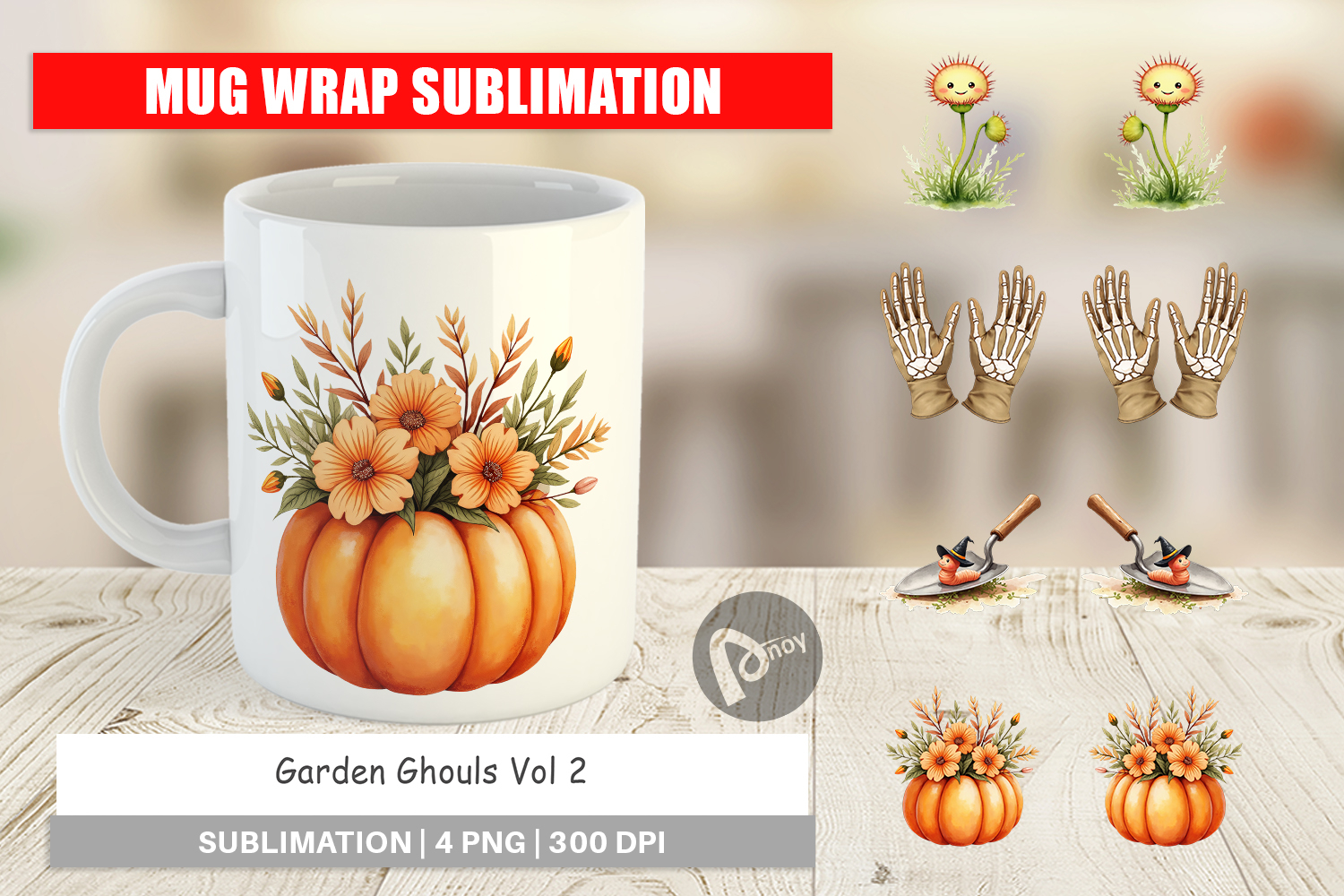 Mug Wrap Watercolor Garden Ghouls example image 1