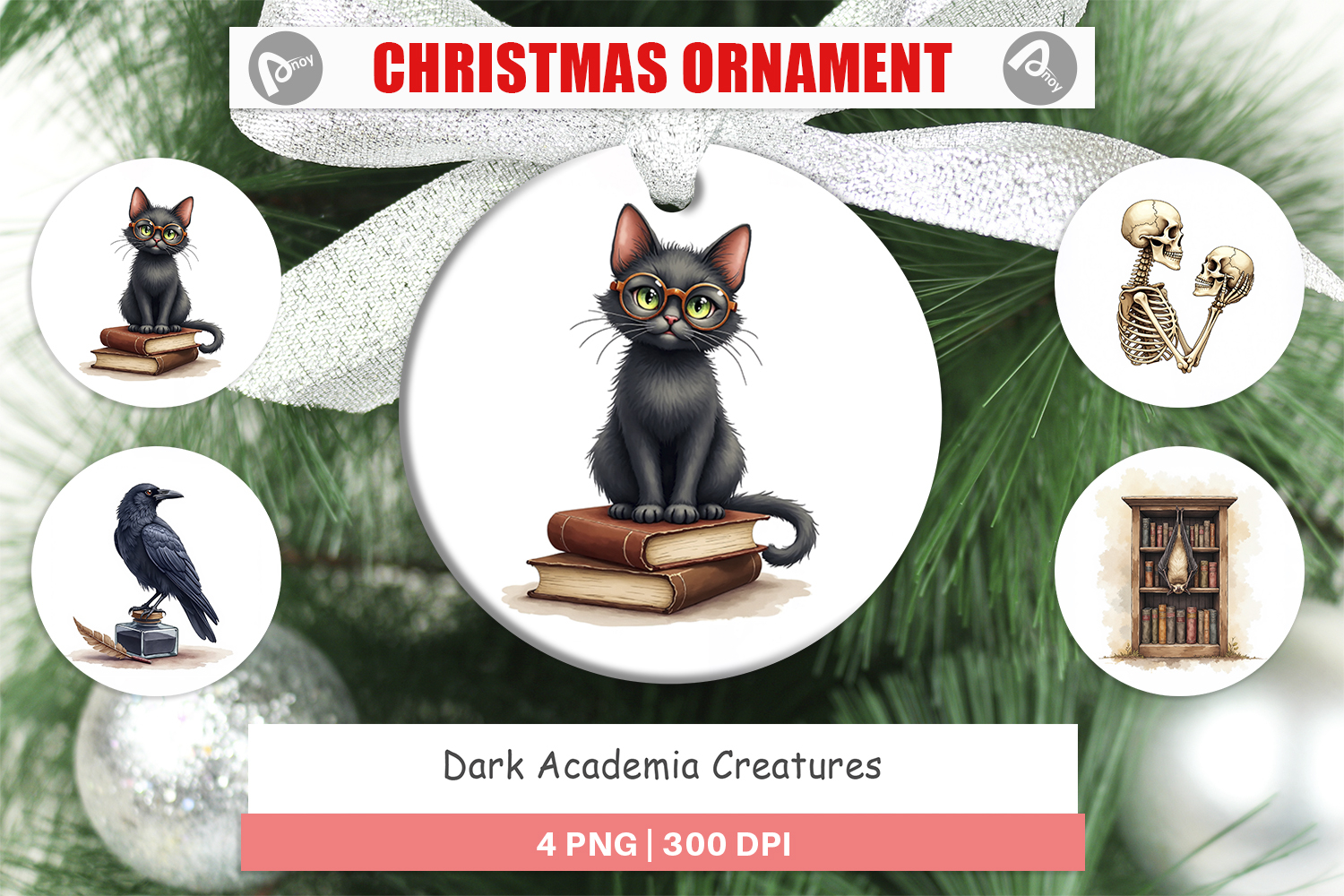 Sublimation Designs Gift For Book Lover Ornament Design Png Round Ornament Sublimation Halloween Tree Decor Spooky Season Gift Printable Holiday Ornament Dark Academia Ornament Creatures Decor Gothic Christmas Ornament