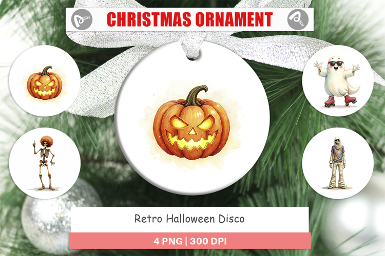 Sublimation Designs Ornament Design Png Round Ornament Sublimation Halloween Tree Decor Spooky Season Gift Printable Holiday Ornament 70s Halloween Gift Gothic Christmas Ornament Retro Halloween Ornament Disco Theme Decor
