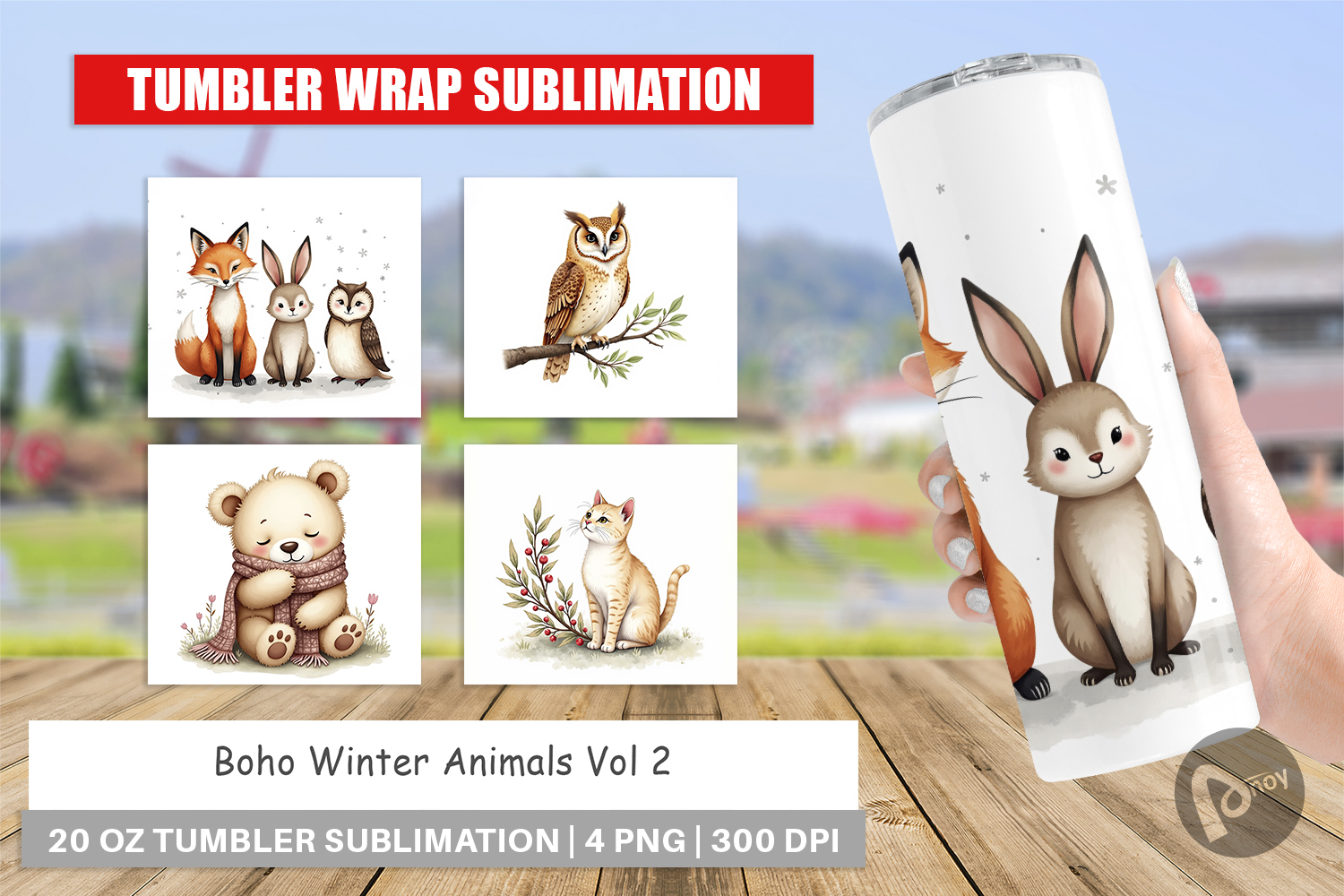 Sublimation Designs Skinny Tumbler Design Tumbler Sublimation Design Tumbler Wrap Png Full Tumbler Wrap Png Woodland Tumbler Wrap Forest Animal Gift Bohemian Style Gift Boho Winter Tumbler Winter Animal Drinkware