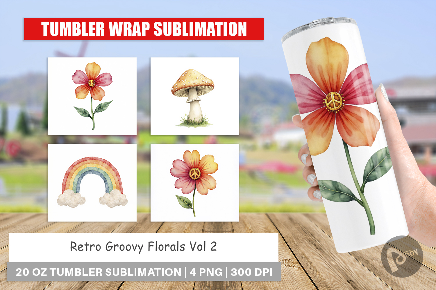 Retro Groovy Florals Tumbler example image 1