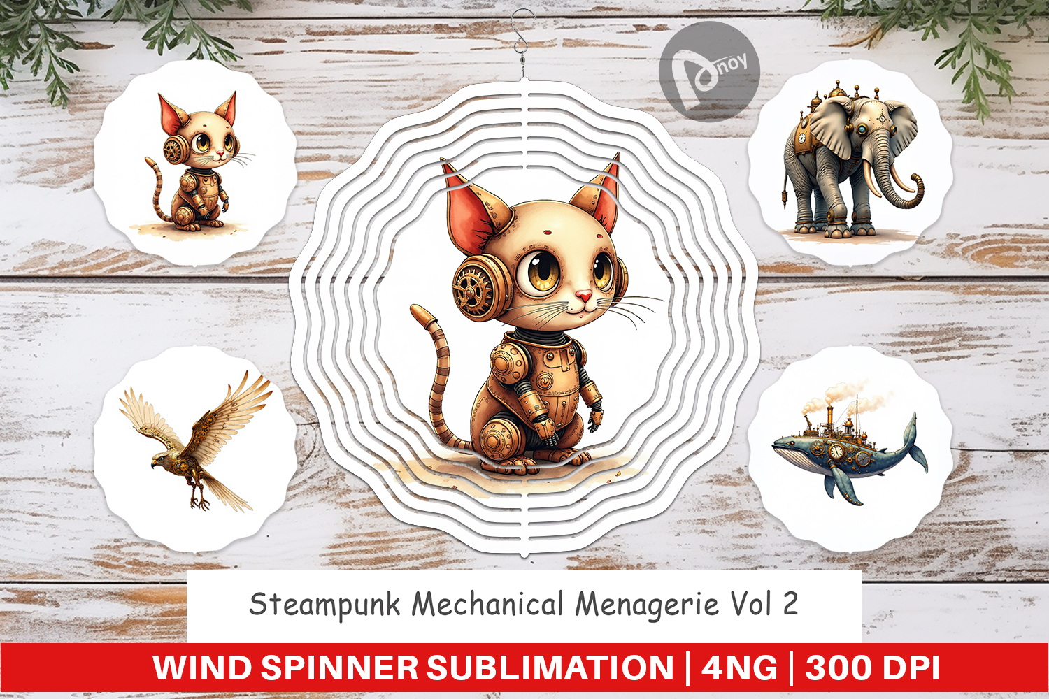 Sublimation Designs Wind Spinner Sublimation Sublimation Spinner Design Animal Lover Art Steampunk Wind Spinner Outdoor Hanging Decor Printable Garden Gift Victorian Industrial Gift Menagerie Garden Decor Steampunk Animal Decor