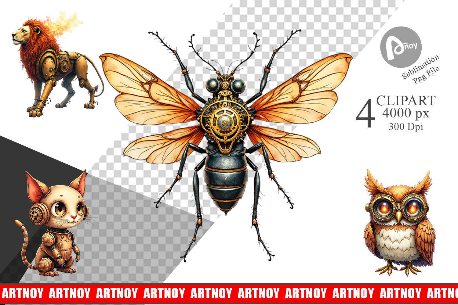 Scrapbook Elements Digital Clipart Printable Stickers Sublimation Designs Steampunk Clipart Clipart Bundle Png Menagerie Png Victorian Industrial Clipart Steampunk Animal Journal Animal Lover Graphic