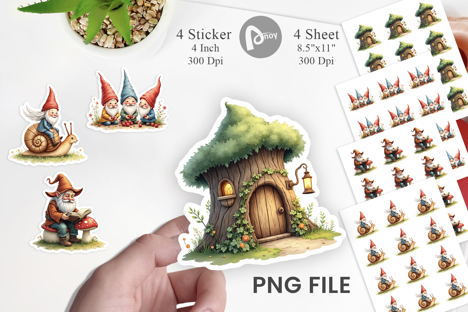 Planner Stickers Journal Stickers Gnome Decal Digital Download Png Printable Sticker Sheet Sticker Sheet Png Forest Gnome Png Woodland Gnomes Sticker Cottagecore Decal Fairy Garden Sticker