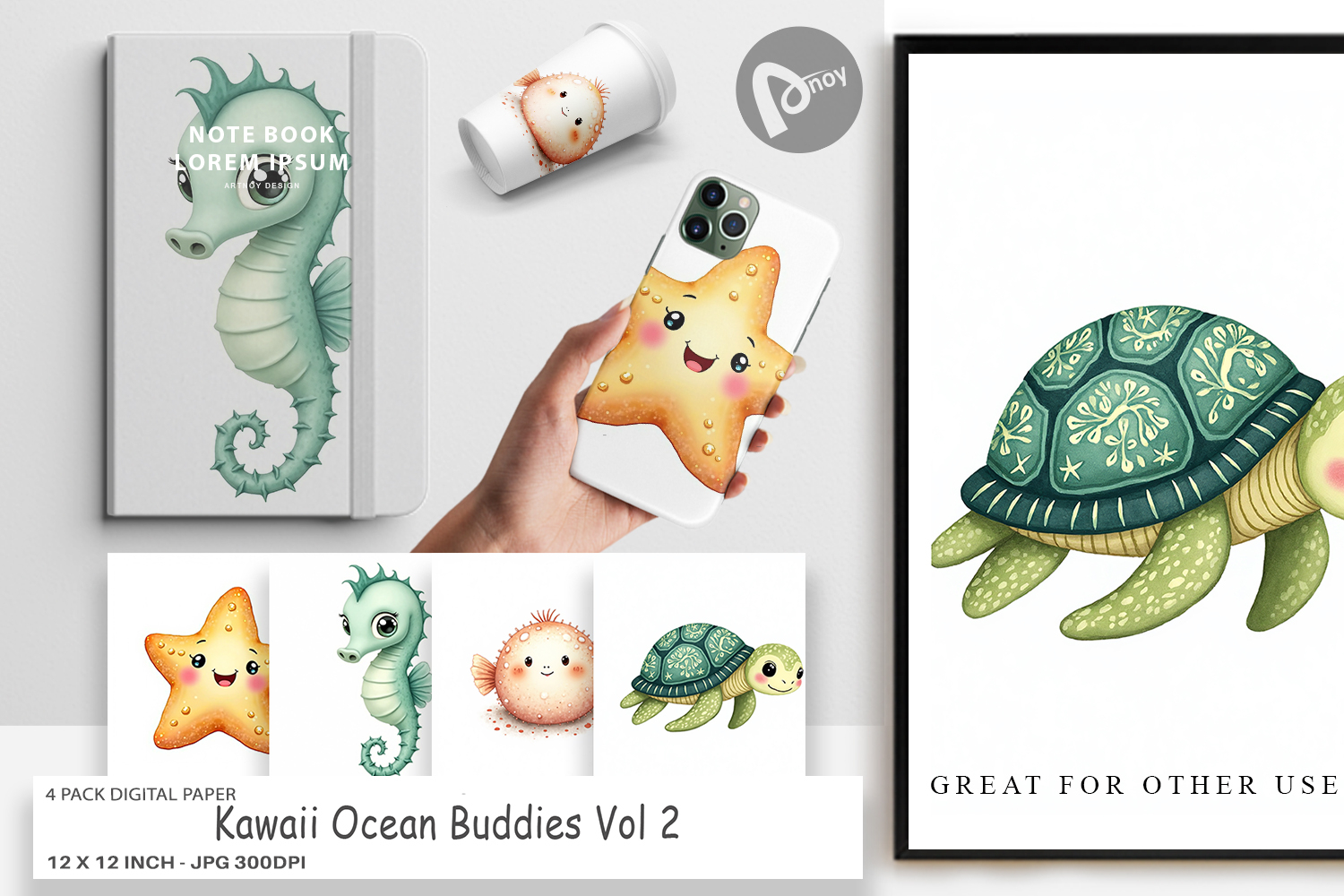 Similar Design Products to Kawaii Ocean Buddies Digital Paper