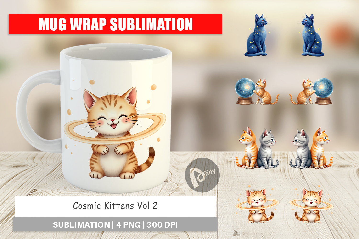 Coffee Cup Design Sublimation Designs Cat Lover Gift Mug Sublimation Design Mug Wrap Printable Mug Template Celestial Pet Gift Cosmic Kittens Coffee Mug Space Cat Mug Png Galaxy Cat Mug